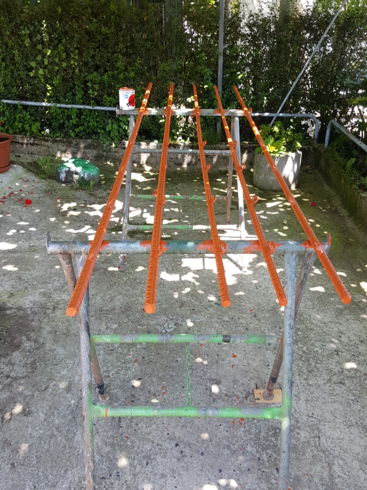 Asegurar que la estructura se mantenga en buenas condiciones con el paso de los años, teniendo en cuenta que estará a la intemperie, me plantea dos opciones: llevar el material a galvanizar o pintarlo. Pensando en minimizar costes, he optado por pintar, dando una primera capa con minio y un acabado final en verde, para que la estructura se integre mejor en el paisaje.